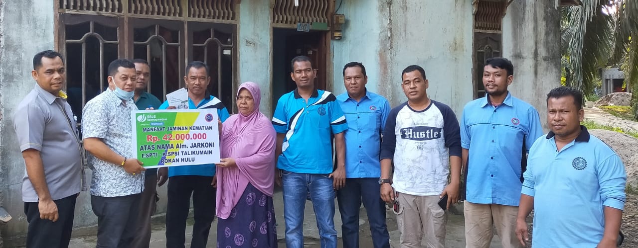 JKM tersebut diserahkan Secara Simbolis Oleh Ketua DPC. FSPTI Kabupaten Rokan Hulu, M.Sahril Topan yang juga merupakan salah satu Pimpinan DPRD Rohul bersama Kepala BPJamsostek KCP Pasir Pangaraian Ridwan Lubis,Wakil Ketua DPC FSPTI Rohul M.Johannes Abul Tambusai, Ketua PUK Tali Kumain Nazarial dan Sekretaris PUK TaliKumain Khoirunnas Kepada Herlina (47) yang merupakan Ahli Waris dari Alm.Jarkoni dikediaman Ahli Waris di Desa Talikumain, Kecamatan Tambusai.