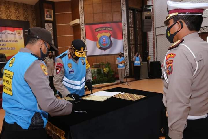 MediaUtama | Medan – Kapolda Sumut melaksanakan Penandatanganan Pakta Integritas Panitia dan Peserta Seleksi Terpadu Sespimti Polri Dikreg Ke-30, PPRA LXII Lemhanas RI, dan PKN TK- I Lan RI T.A 2020, Selasa (08/09/2020) bertempat di Aula Tribrata Mapolda Sumut.