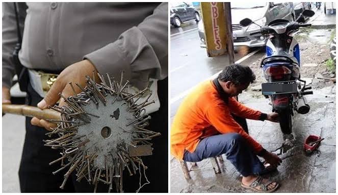 MediaUtama.News – BIP (43), pria yang ditangkap tim gabungan kepolisian karena menebar ranjau paku rangka payung merupakan seorang tukang tambal ban.