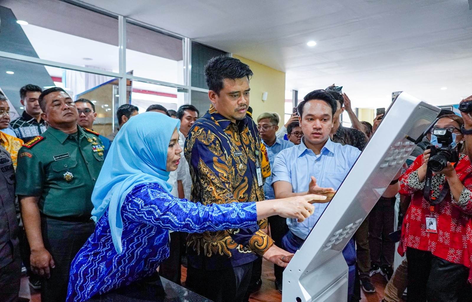 Pengguntingan pita oleh menantu Presiden RI Joko Widodo itu menjadi pertanda launching gedung yang menjadi lokasi pelayanan publik terintegrasi tersebut.