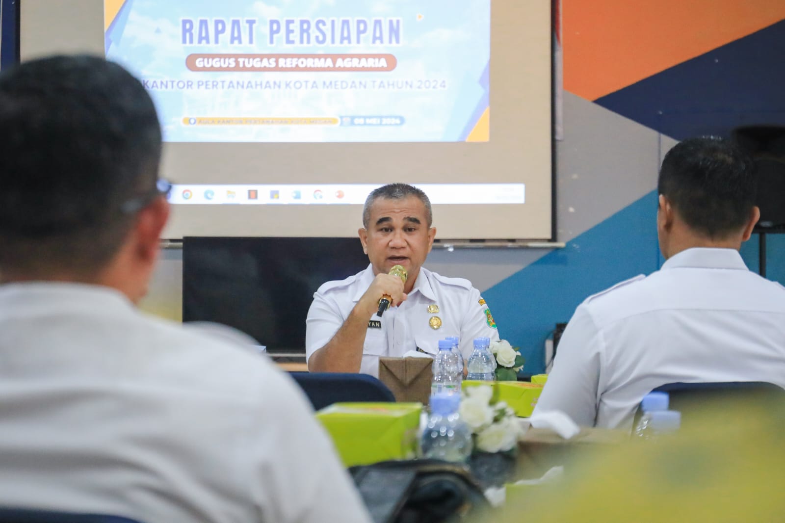 Medan, Mediautama.news – Pemko Medan berkolaborasi dengan Kantor Pertanahan (Kantah) Kota Medan melakukan rapat persiapan Gugus Tugas Reforma Agraria (GTRA) tahun 2024, di aula Kantah Medan, jalan STM, Rabu (8/5/24).