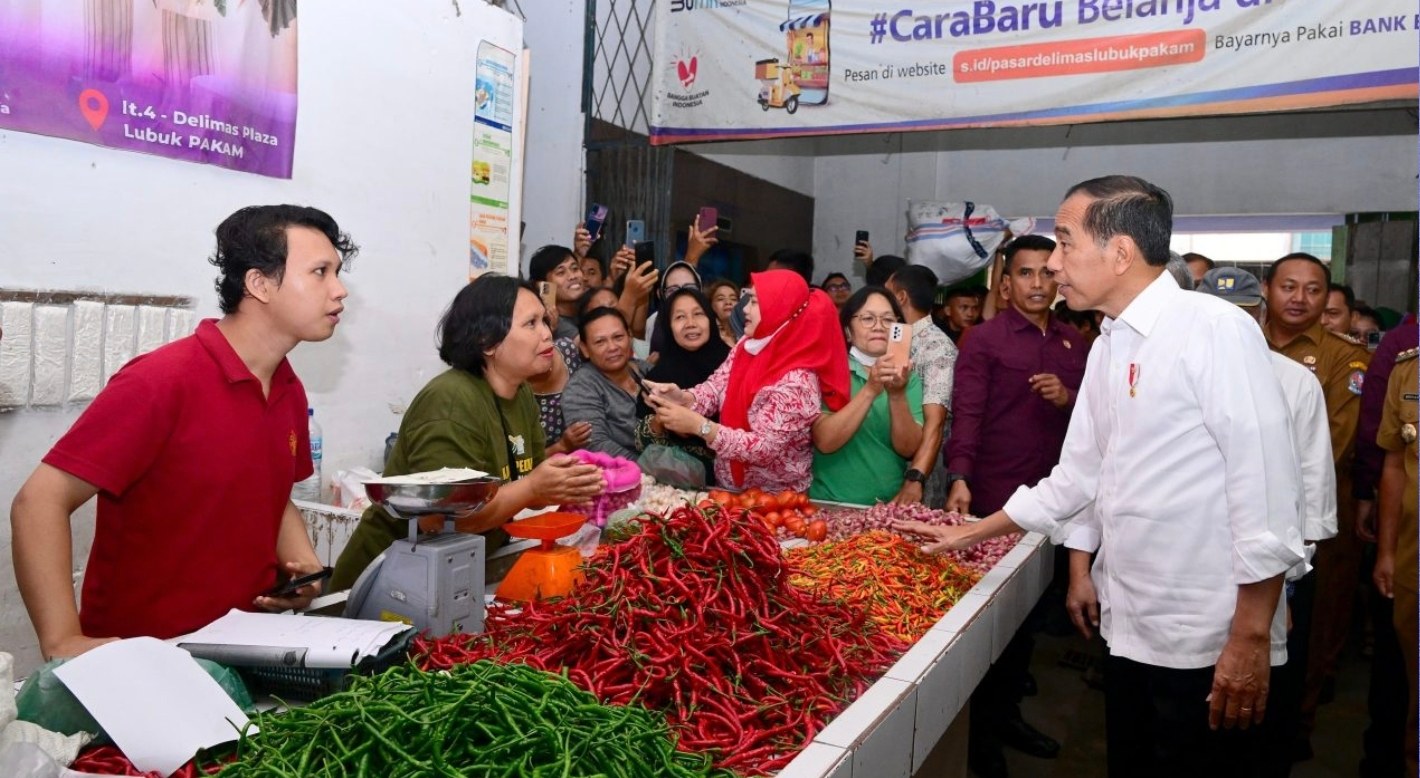 Turut hadir mendampingi Presiden dalam peninjauan pasar tersebut adalah, Menteri Perdagangan Zulkifli Hasan, Menteri PUPR Basuki Hadimuljono, Pj. Gubernur Sumatra Utara Agus Fatoni, dan Pj. Bupati Deli Serdang Wiriya Alrahman.(r/BPMI Setpres)