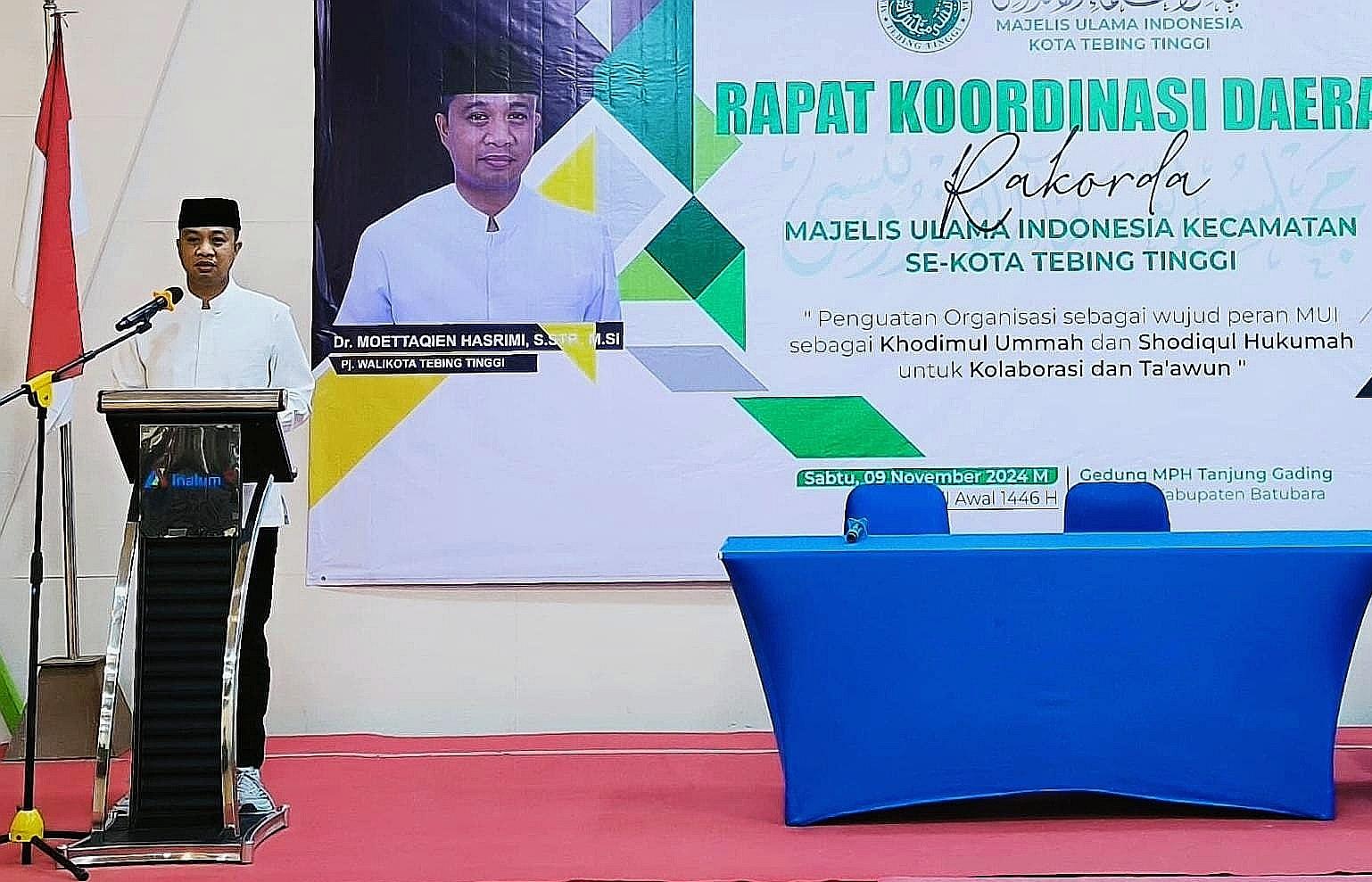 Harapan itu disampaikan Moettaqien dalam sambutannya, saat menghadiri Rapat Koordinasi Daerah (Rakorda) MUI se-Kecamatan Kota Tebingtinggi, Sabtu (9/11/2024), di Gedung MPH Tanjung Gading Inalum, Kabupaten Batubara.